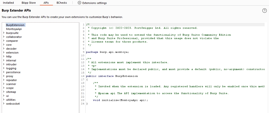 The Extensions APIs give developers significant power and flexibility when writing custom extensions. You can use these APIs to seamlessly interact with Burp Suite's existing functionality and tailor your extensions to perform specific tasks.