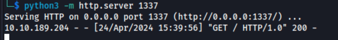 For this attack, we will need a server that will receive data from other servers. You can use Python's http.server module, although there are options out there, like Apache or Nginx. Using AttackBox or your own machine, start a Python web server by using the command: